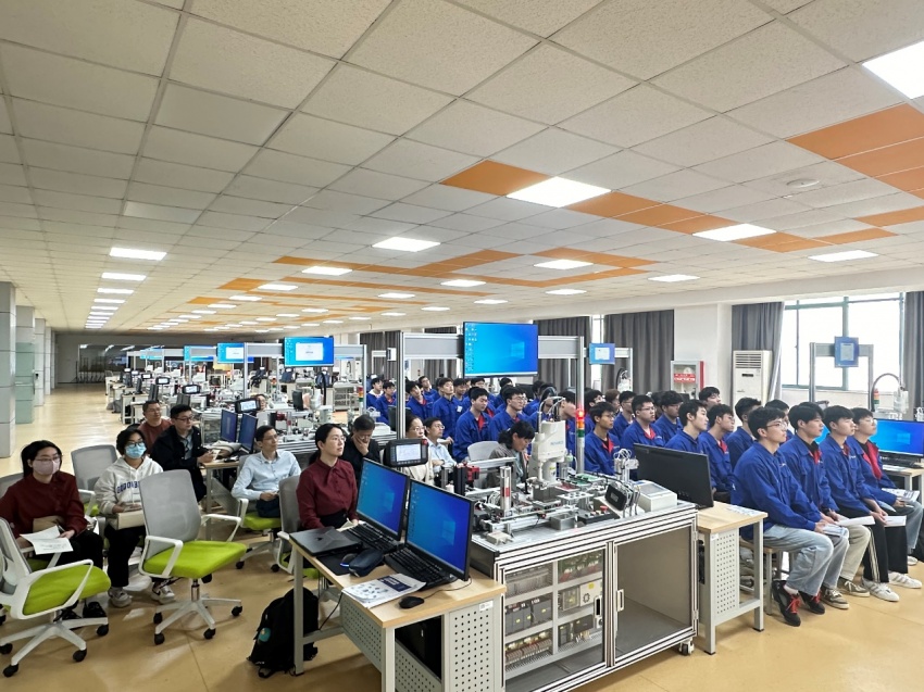 4月16日下午,公开示范课在常州科教城现代工业中心5号楼3楼电气自动化技术实训中心举行,由yl6809永利检测中心、轨交装备学院电气自动化技术专业储琴老师开讲。教学工作部部长丁才成,学校兼职教学督导、审计处处长顾亚莉,质管办章洁慧老师,yl6809永利检测中心、轨交装备学院领导班子、电气自动化技术专业教师、近三年入职新教师等参加了公开示范课活动。活动由yl6809永利检测中心、轨交装备学院副院长张亮主持。