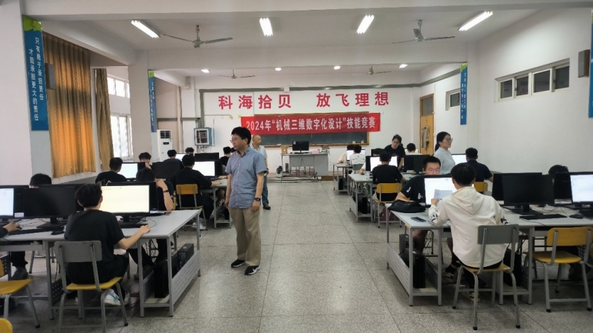 本次竞赛旨在考核和展示参赛选手在机械数字化设计方面的综合能力,包括三维建模、机械部件的创新设计与虚拟装配等关键技能。参赛选手利用现场提供的计算机,通过实操的方式,在紧张而有序的比赛过程中,展示了扎实的专业基础,更在创新设计和虚拟装配环节中展现了出色的创造力和解决问题的能力。