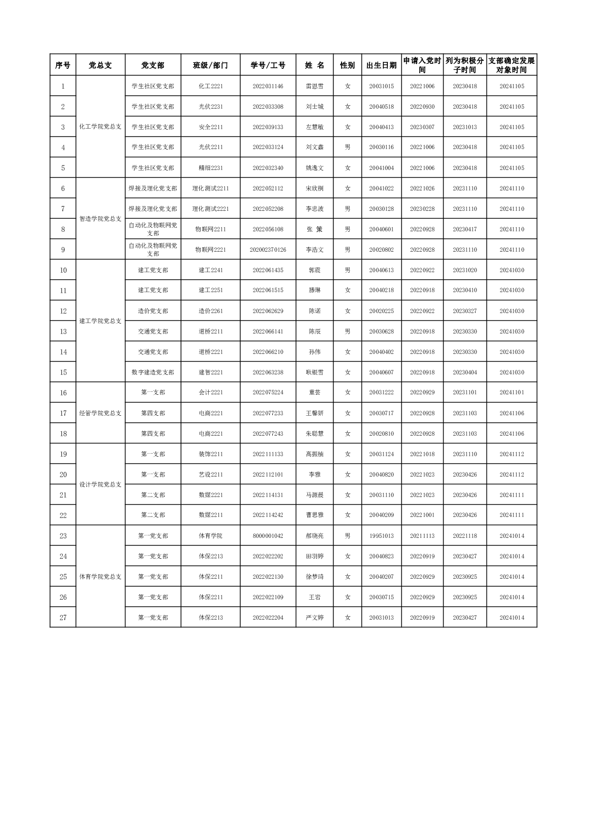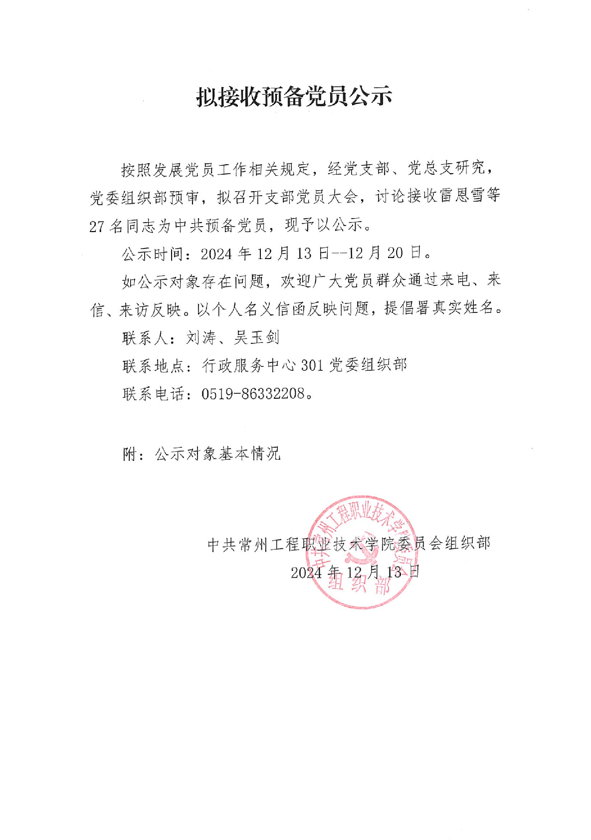 拟接收预备党员公示