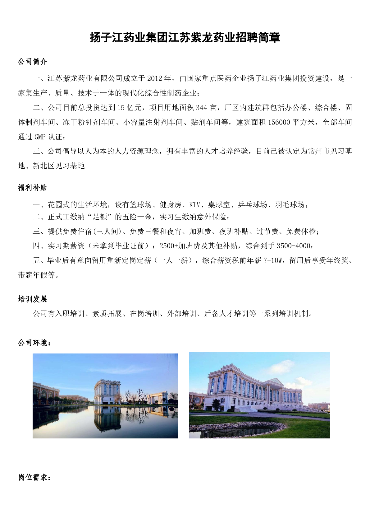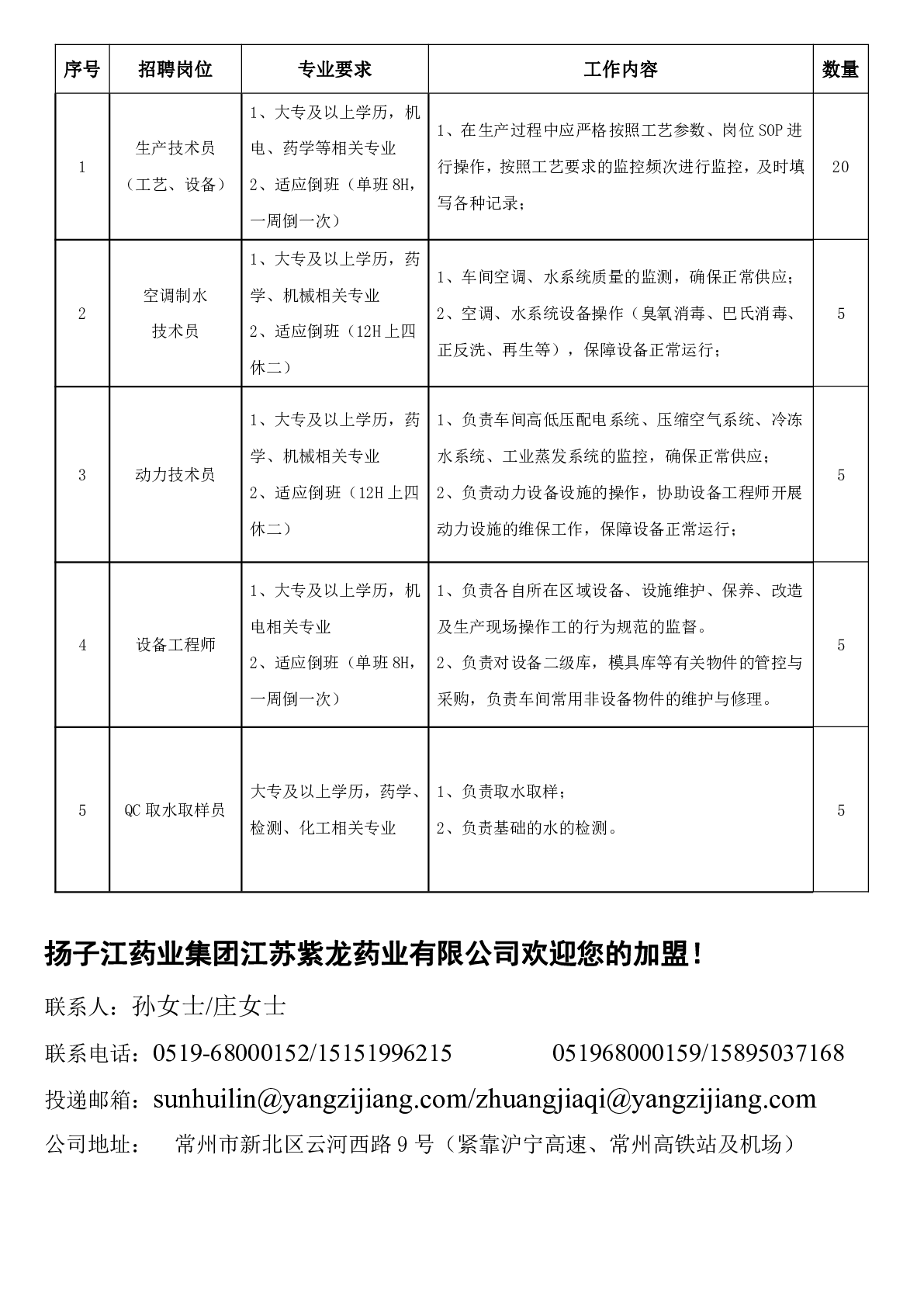 20250017扬子江药业集团江苏紫龙药业有限公司招聘信息