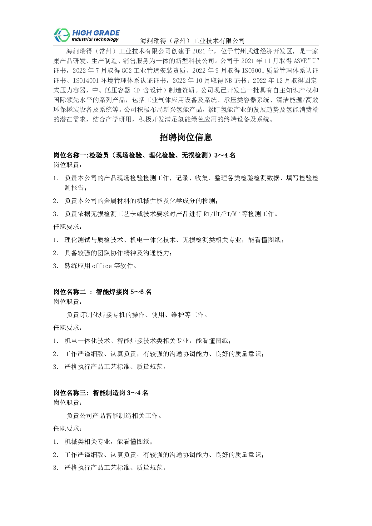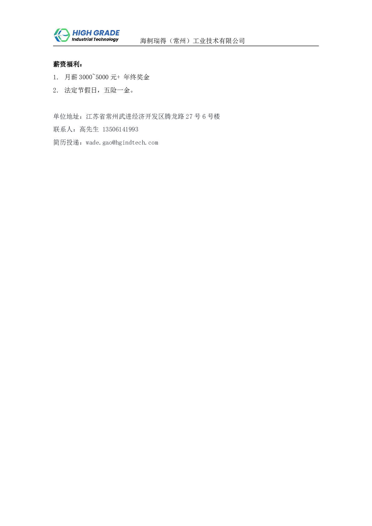 20250020海舸瑞得(常州)工业技术有限公司招聘信息