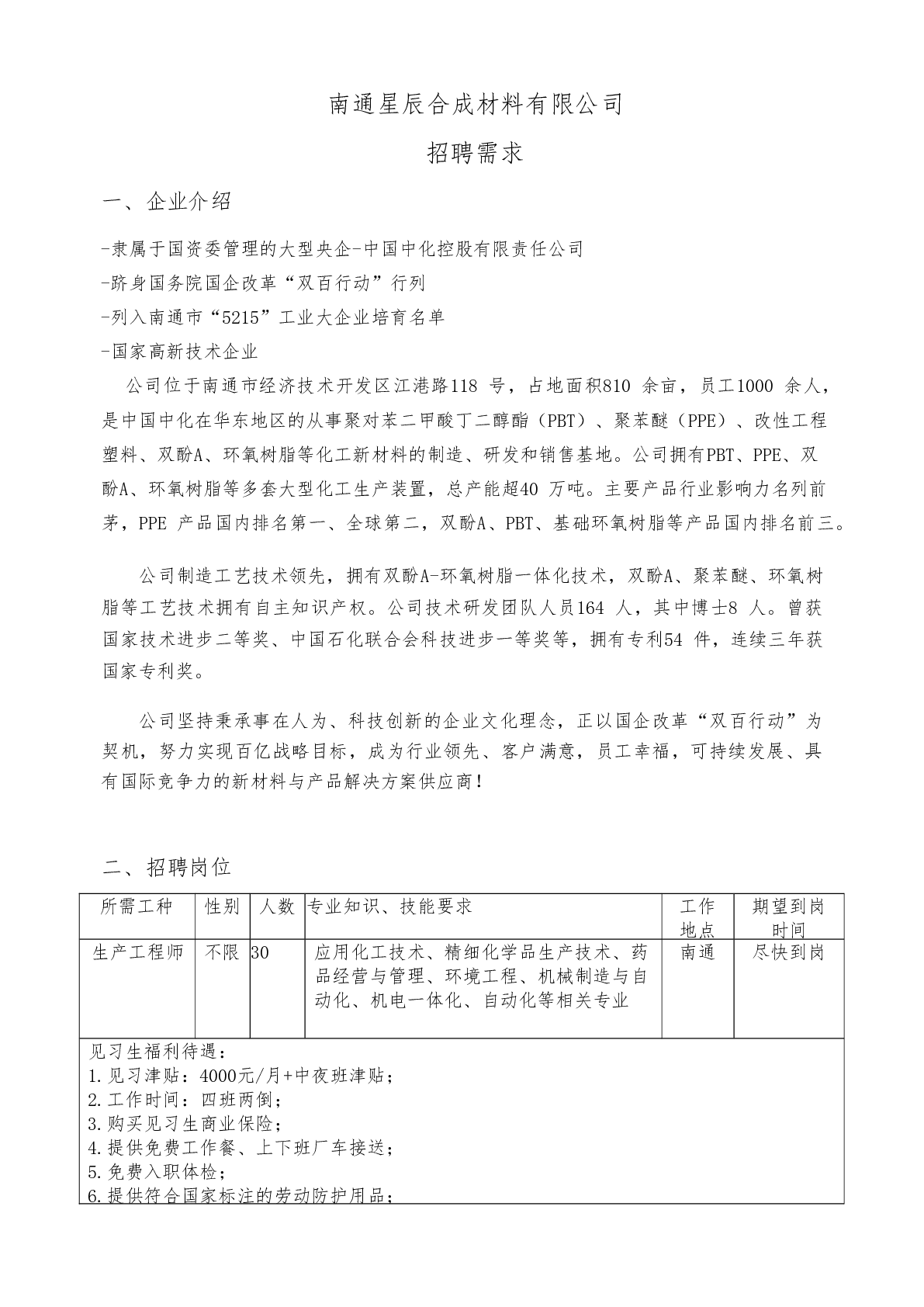 20250039南通星辰合成材料有限公司招聘信息