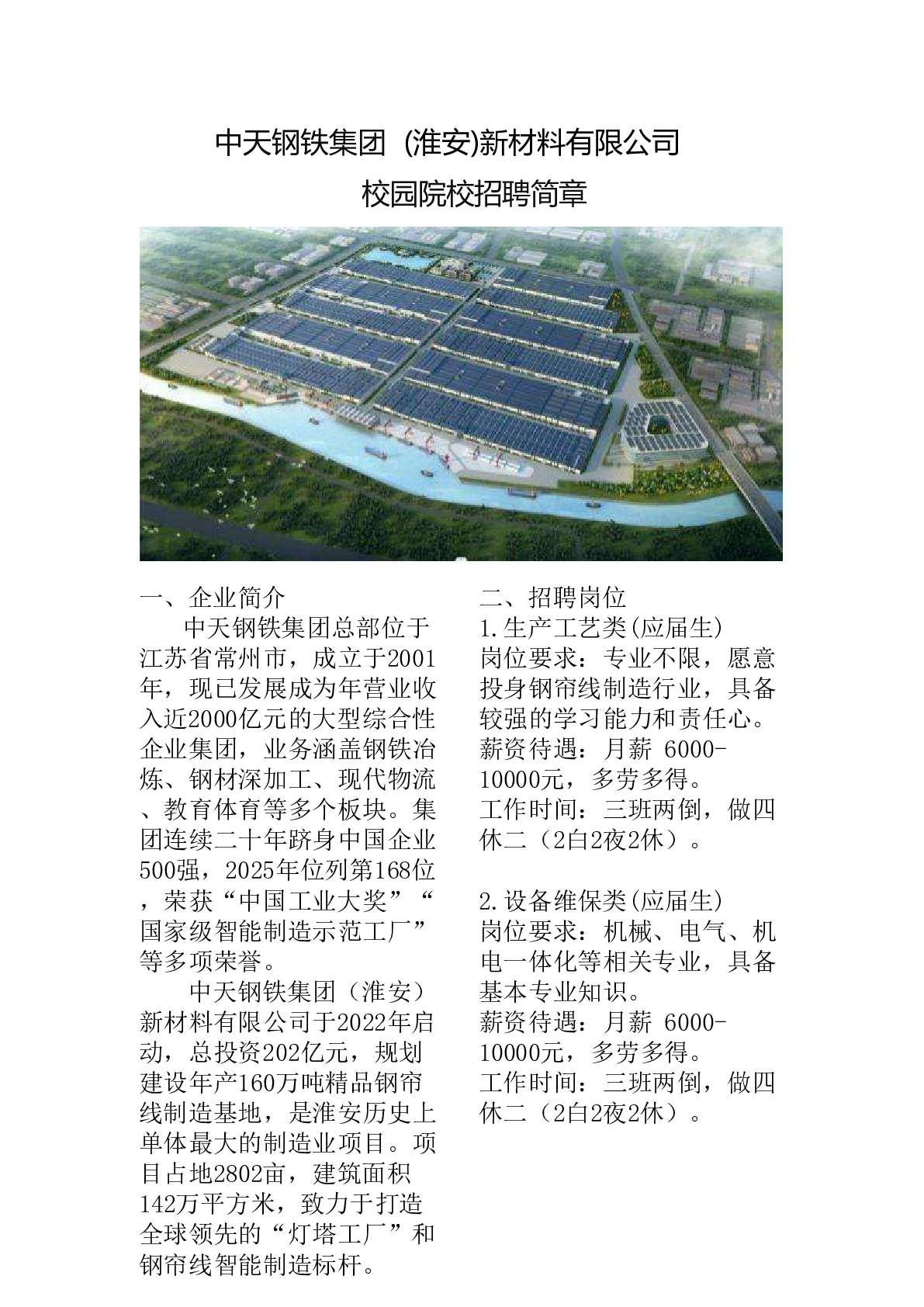 20250060中天钢铁集团(淮安)新材料有限公司招聘信息