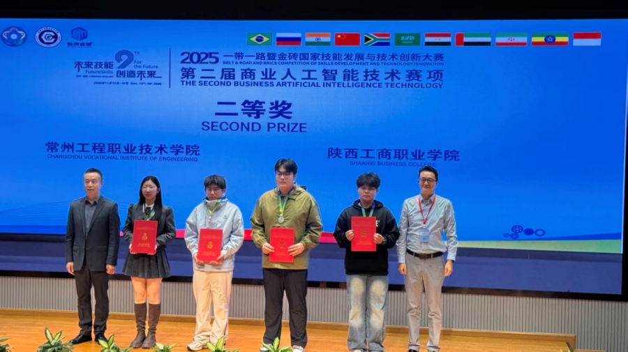 近日,2025一带一路暨金砖国家技能发展与技术创新大赛第二届商业人工智能技术赛项总决赛在成都工业职业技术学院落幕。yl6809永利检测中心朱宝生教授、教学工作部王梅老师共同指导的大数据技术专业学生孙海洋、王颖、张宁组成的团队荣获总决赛银奖,朱宝生、王梅荣获大赛优秀指导老师奖。