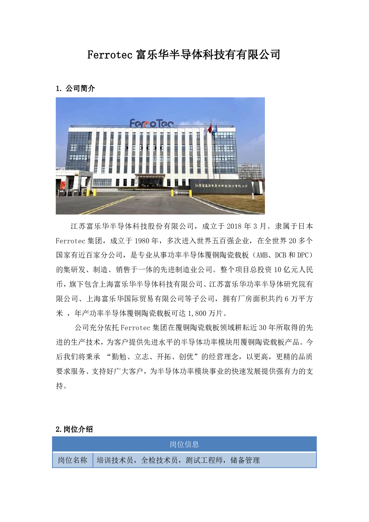 20250061江苏富乐华半导体科技股份有限公司招聘信息