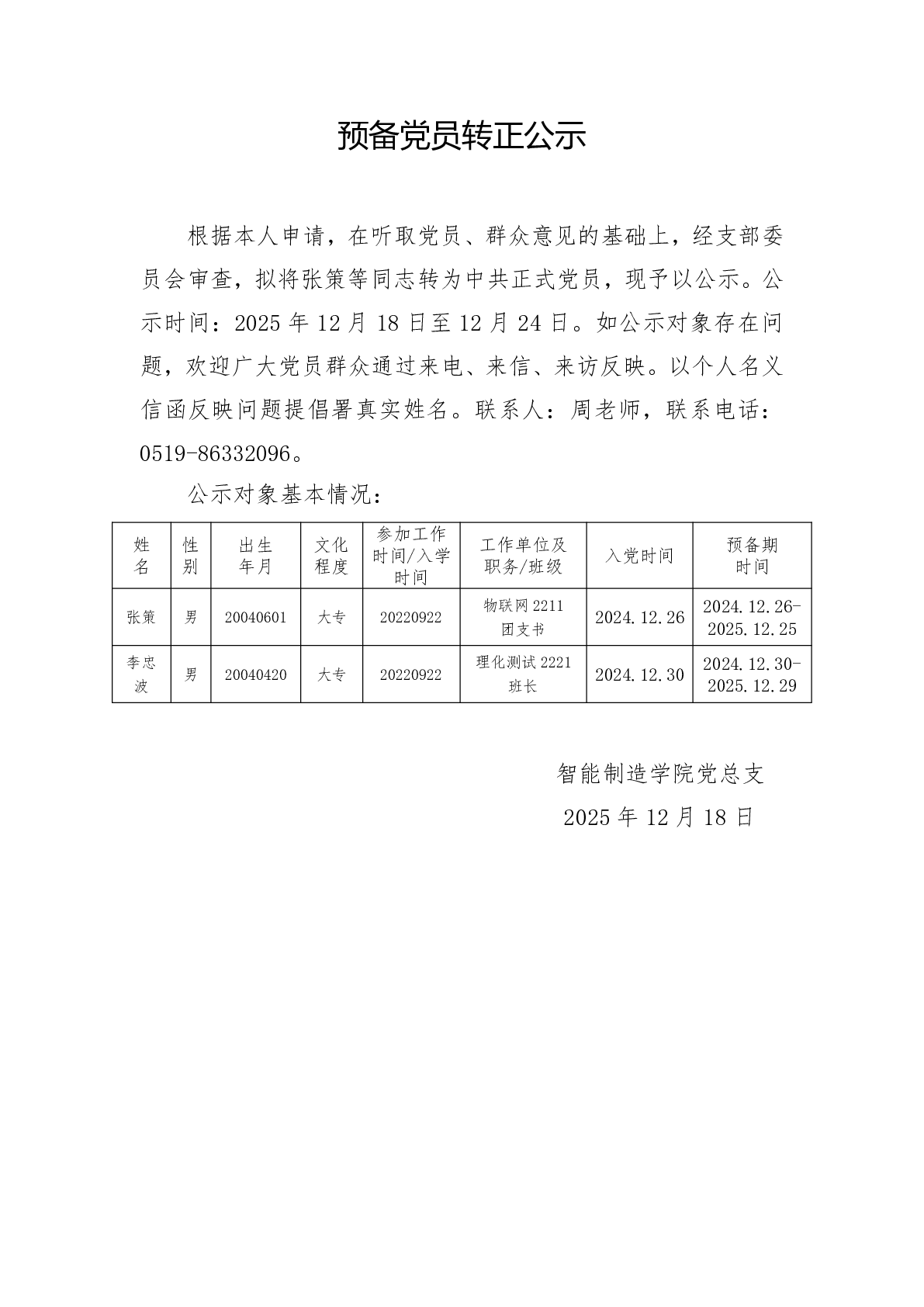 预备党员转正公示