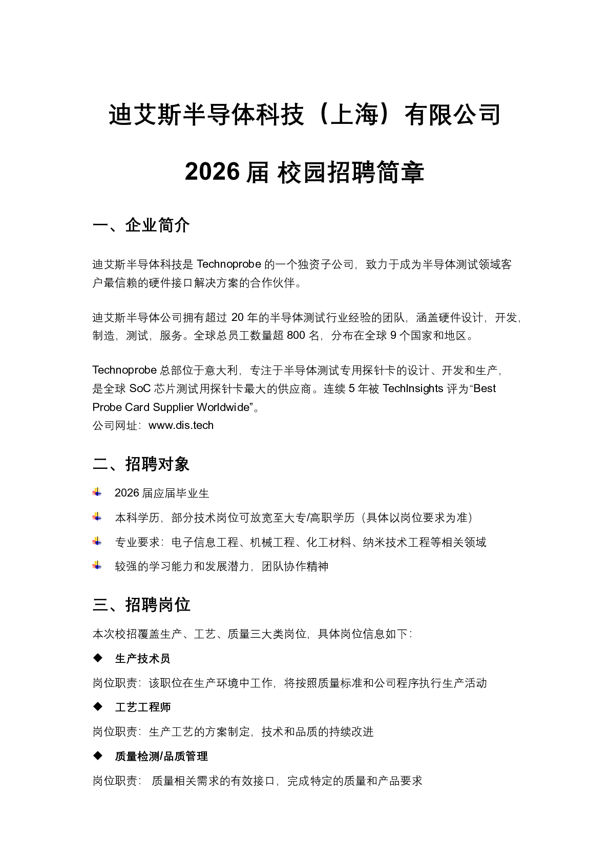 20260004迪艾斯半导体科技(上海)有限公司招聘信息