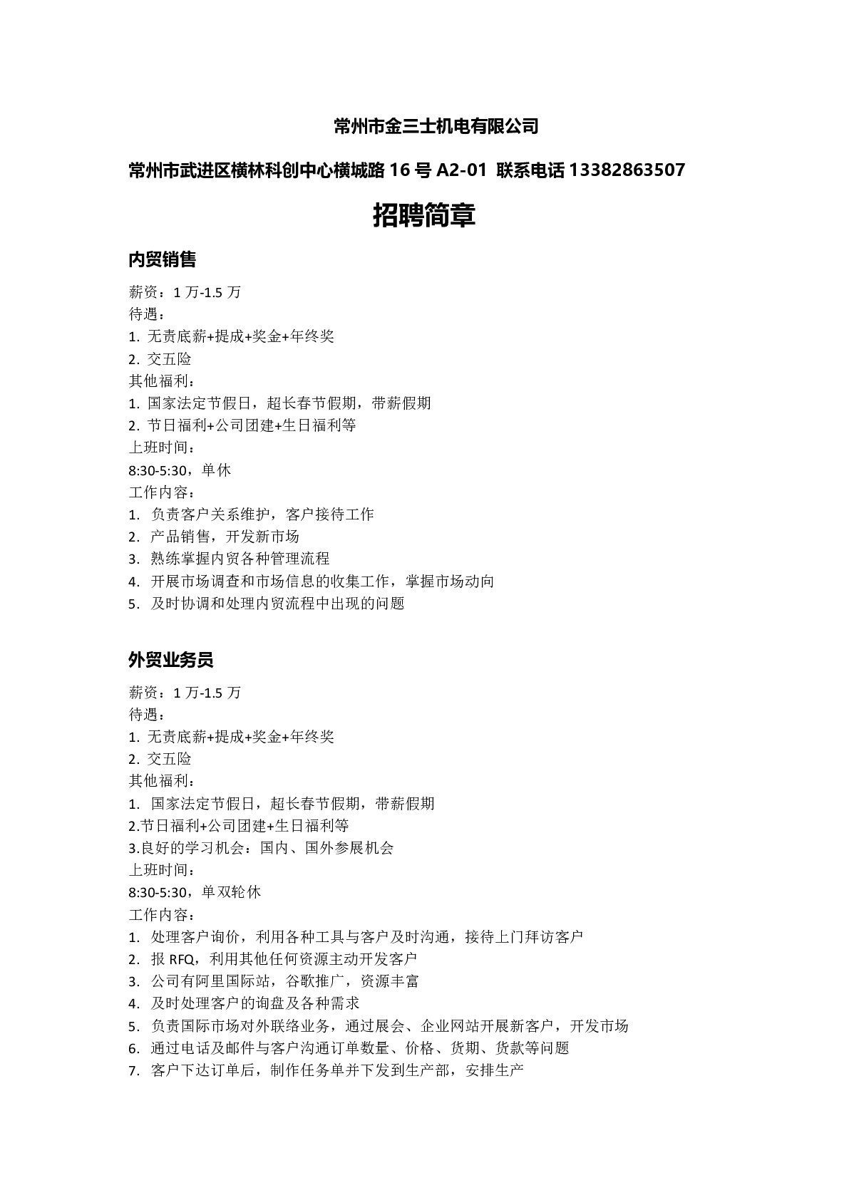 20260008常州市金三士机电有限公司招聘信息