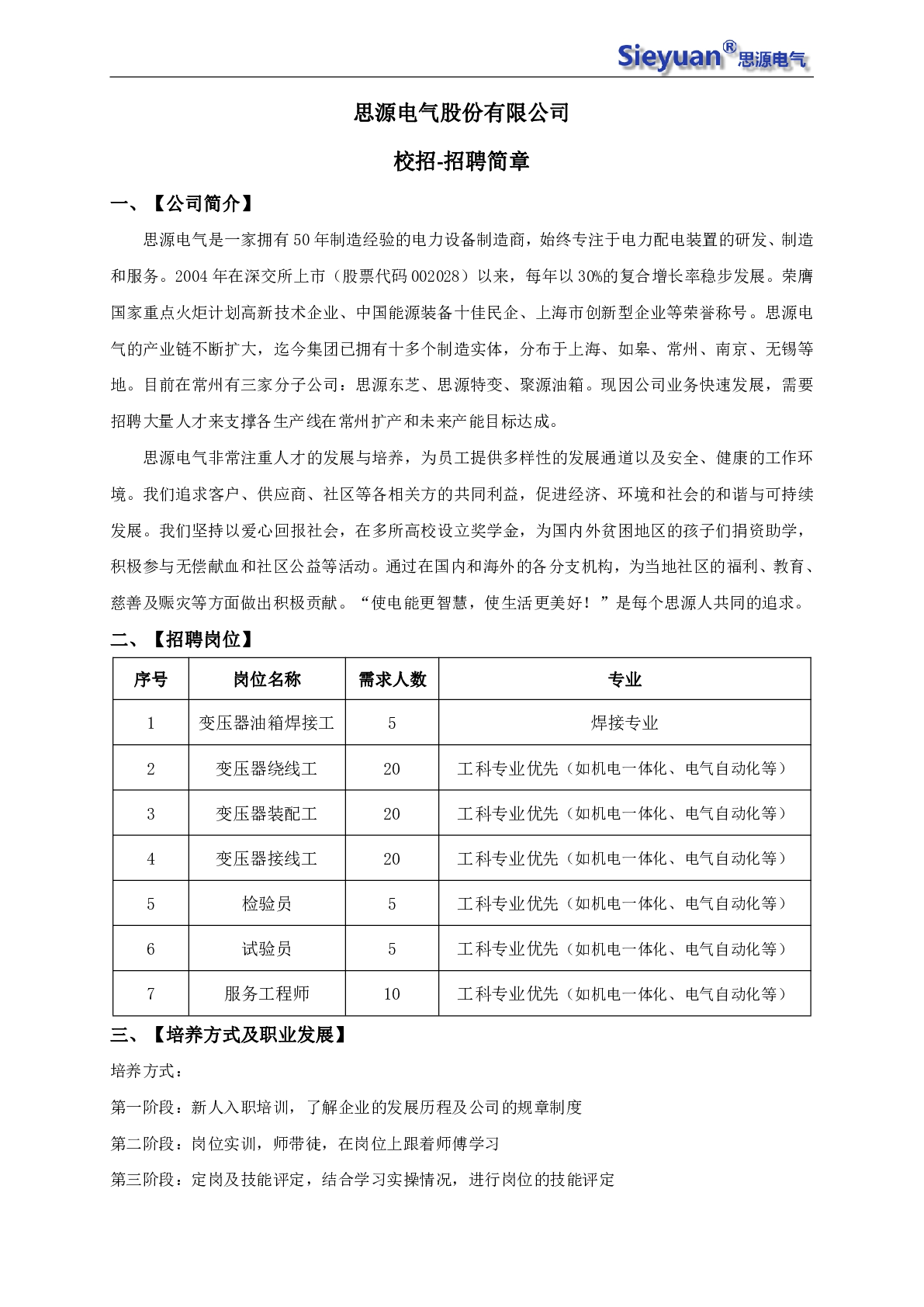 20260017思源电气股份有限公司常州地区招聘信息