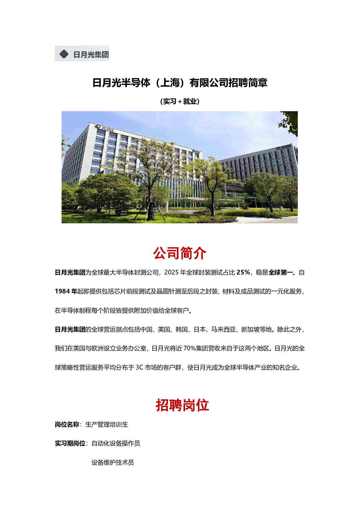 20260021日月光半导体(上海)有限公司招聘信息